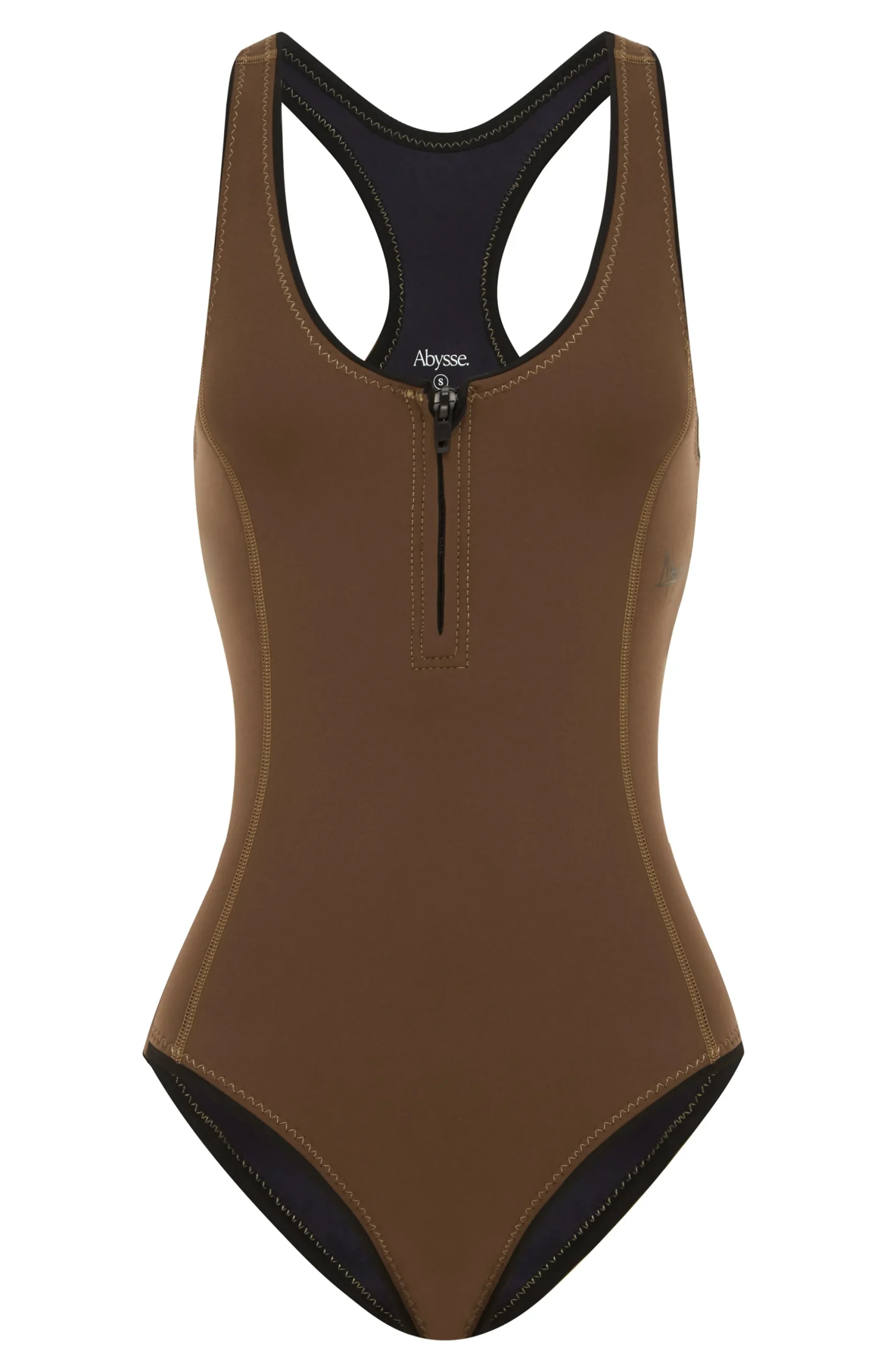 Made out of 100% Japanese limestone based neoprene in 2mm. This one-piece neoprene bikini is named after our muse Elle McPherson, straight from the 80’s.