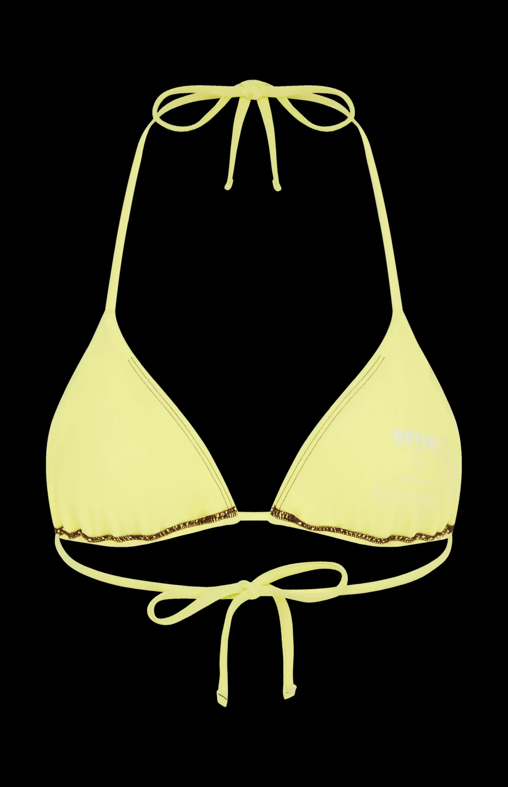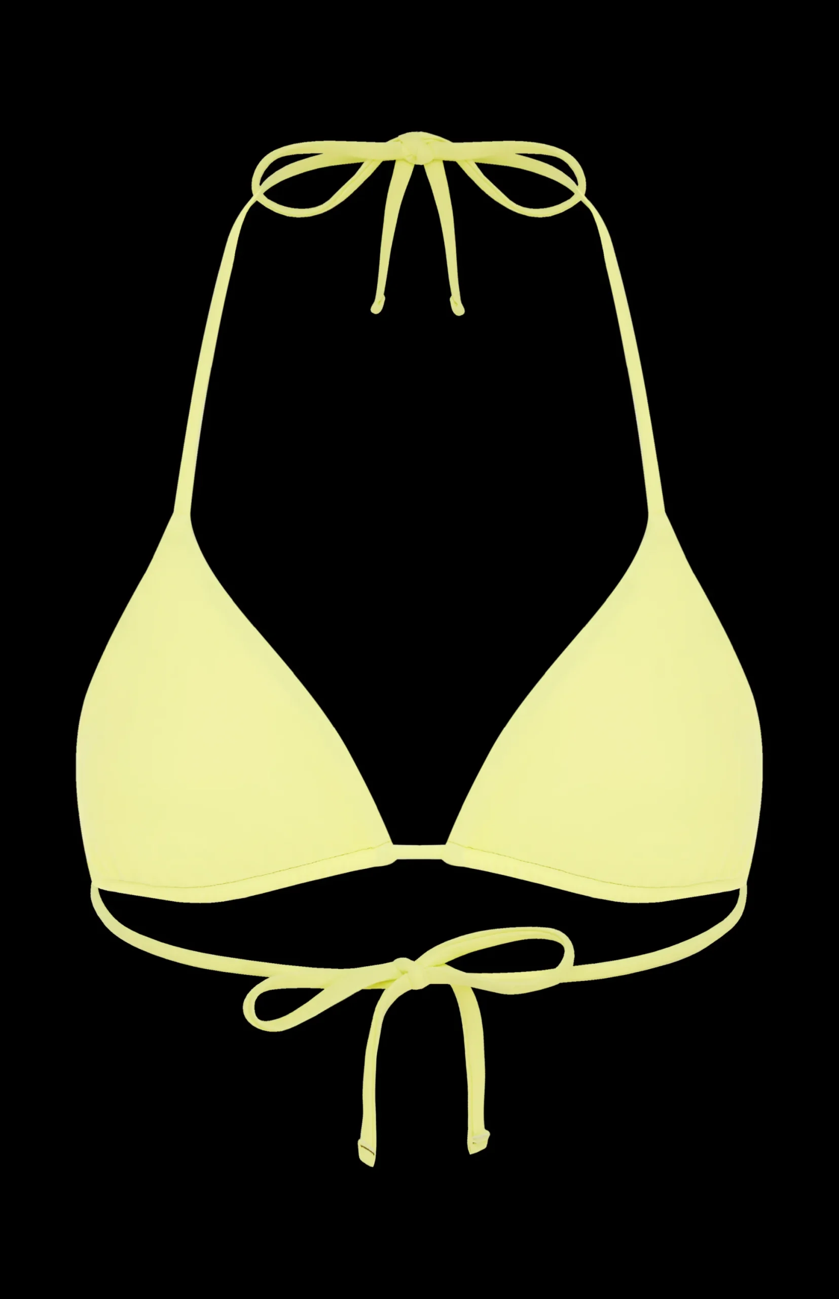 Classic triangle top, attached via a neck and back bow tie. The bust cups have a ruched aesthetic look but are also adjustable to your own body.