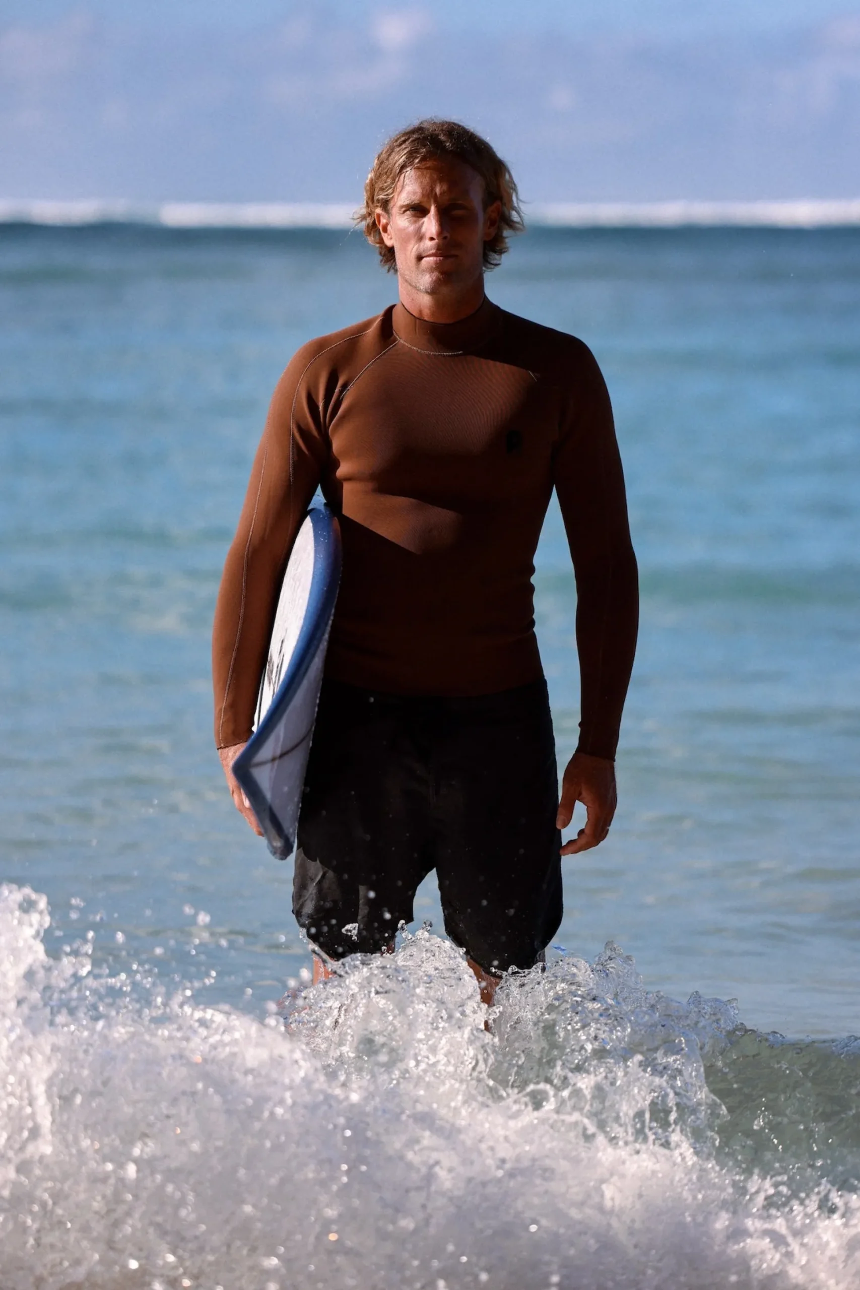 Introducing the Buzzy, our high performance top, made to be worn close to the body, constructed with a back zipper in order to provide a tight fit, to sustain hours in the ocean in any conditions.