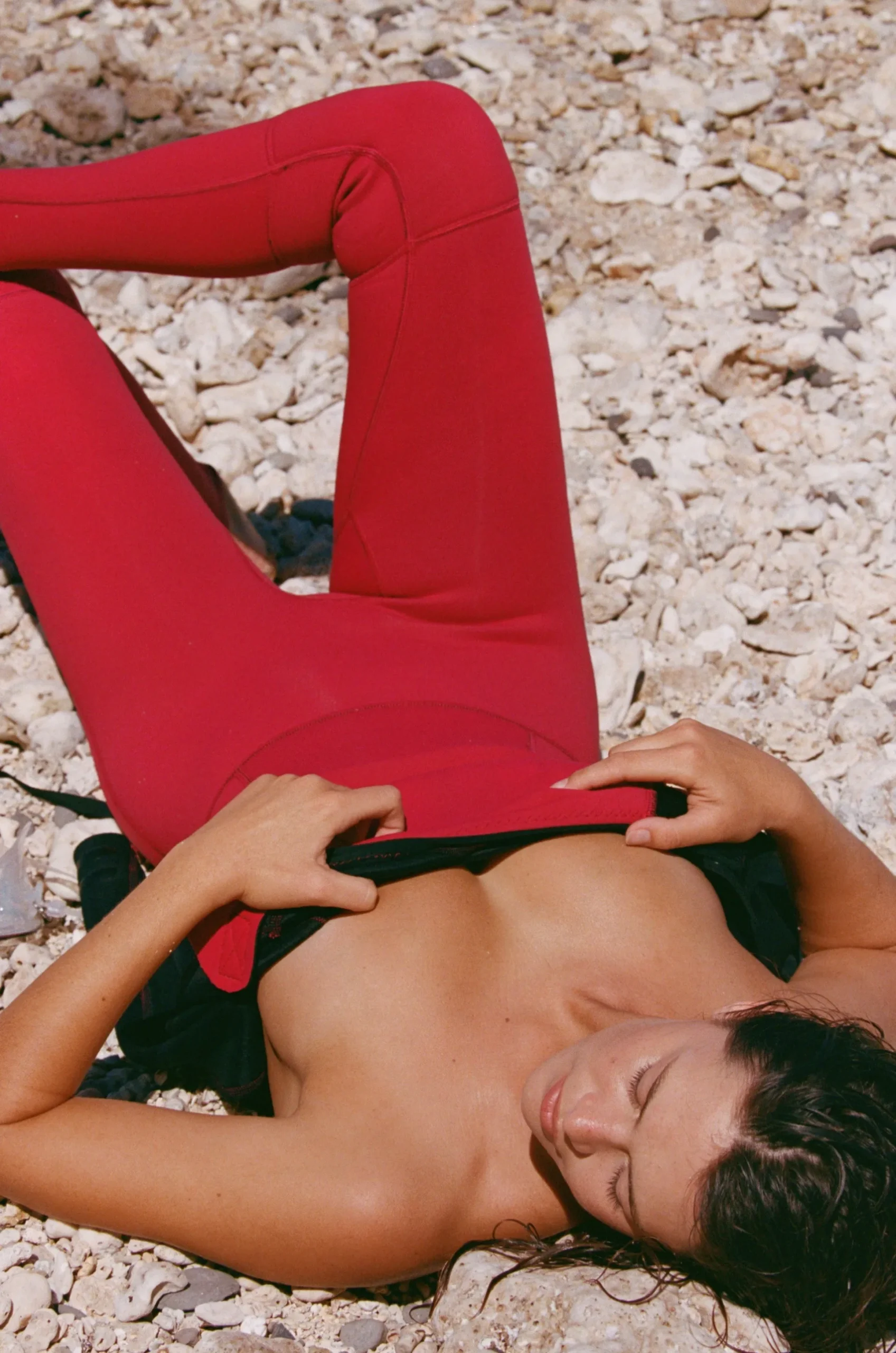 - Flatlock-stitched seams for comfort and flexibility in warmer sessions
