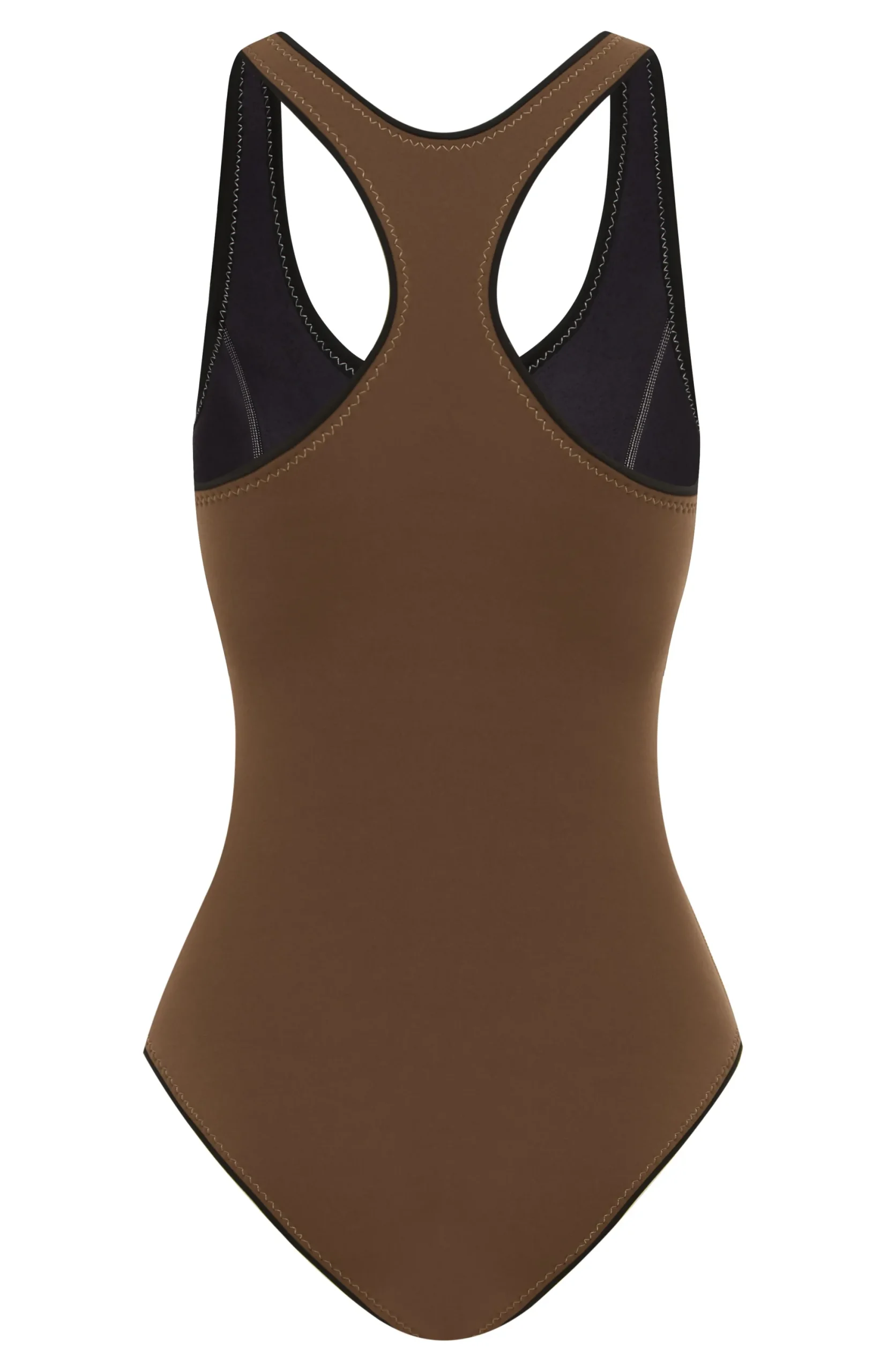 Made out of 100% Japanese limestone based neoprene in 2mm. This one-piece neoprene bikini is named after our muse Elle McPherson, straight from the 80’s.