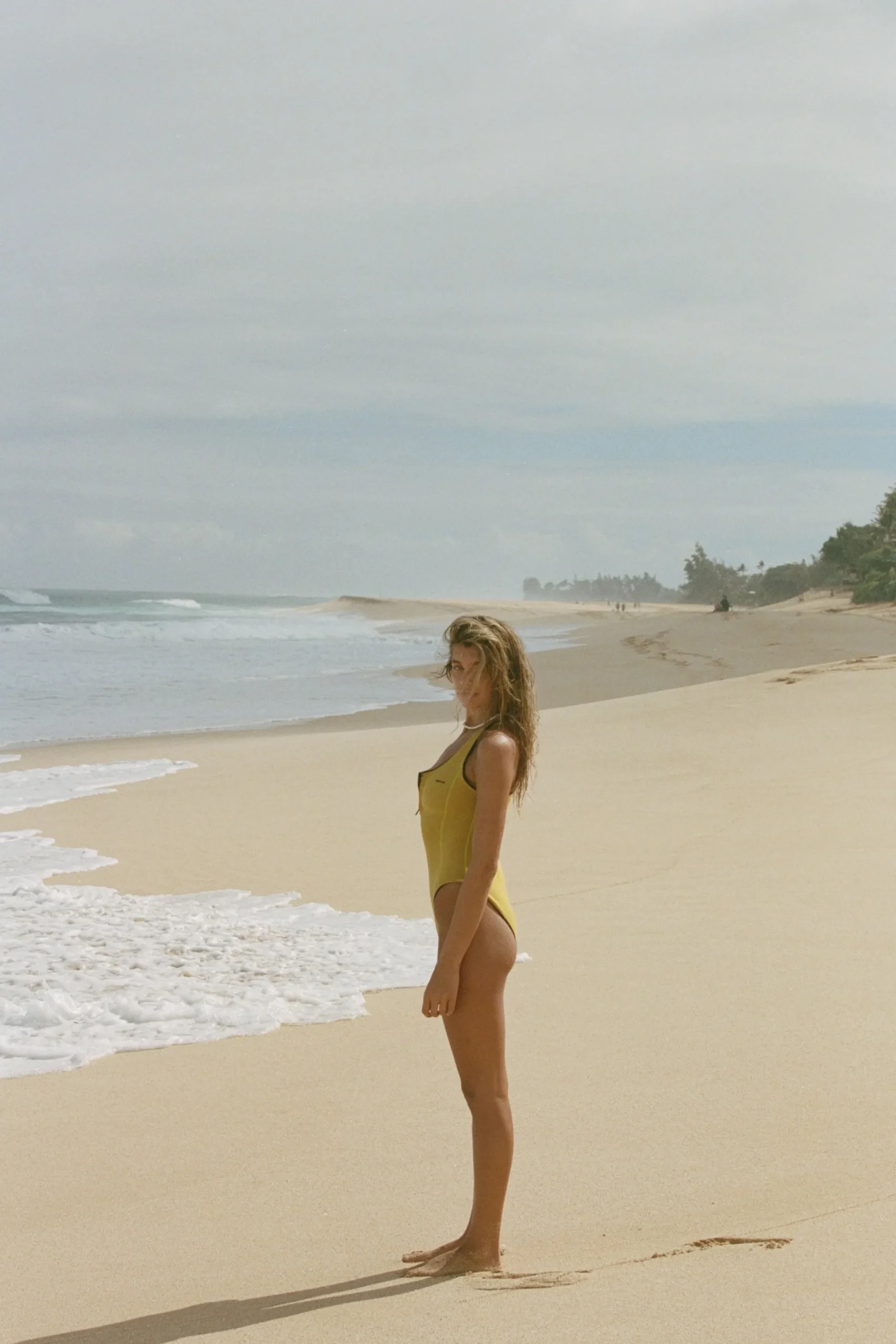 Made out of 100% Japanese limestone based neoprene in 2mm. This one-piece neoprene bikini is named after our muse Elle McPherson, straight from the 80’s.